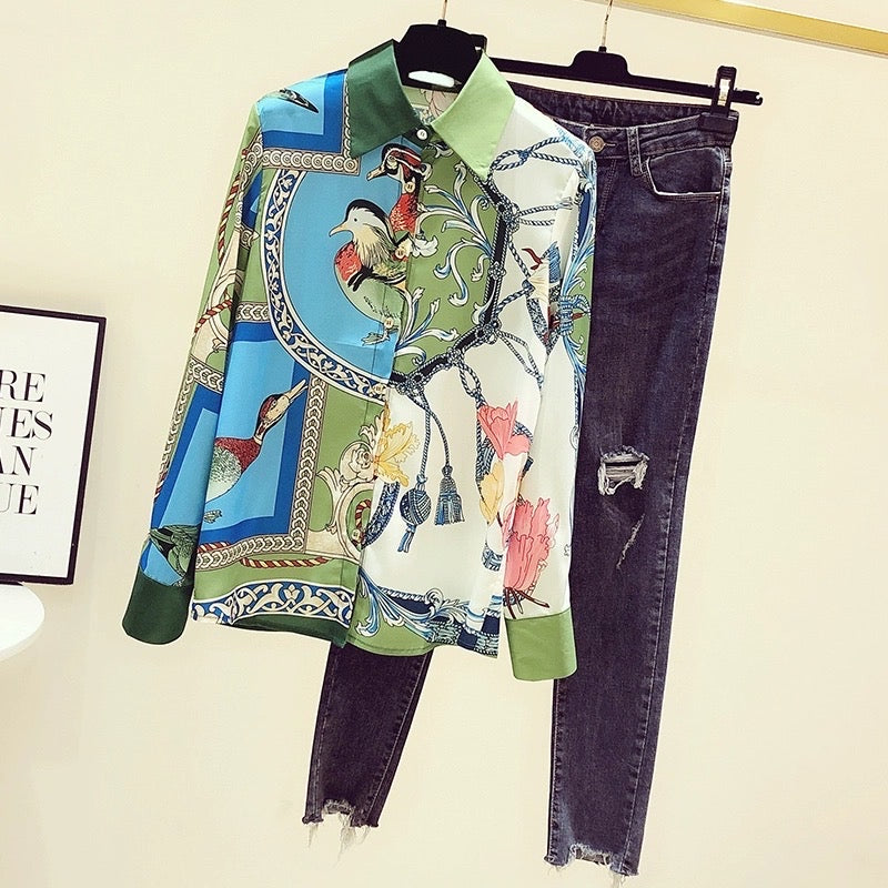 Retro Hong Kong style contrast color shirt women's high-end niche chiffon long-sleeved top 2023 spring and autumn new design sense
