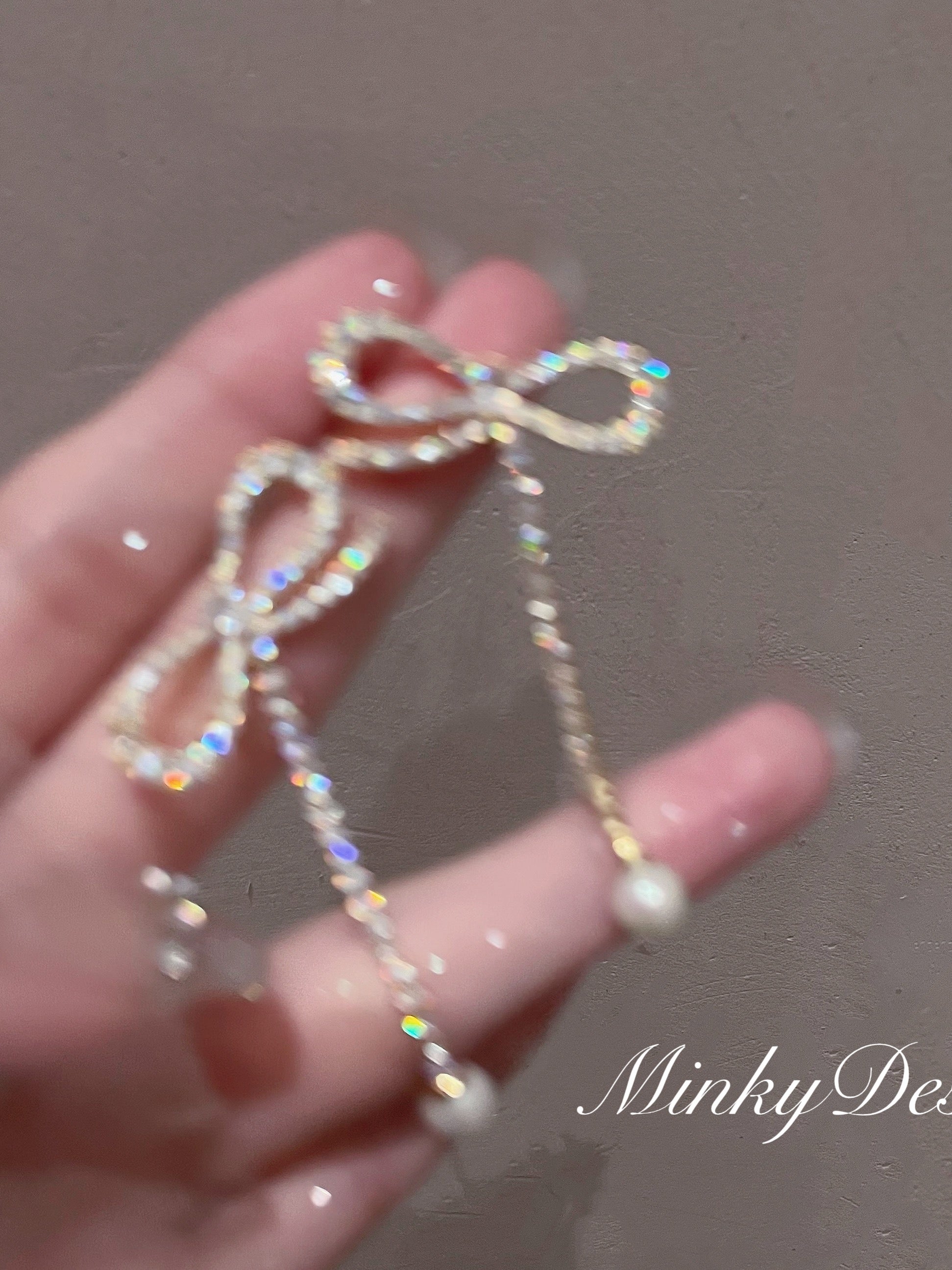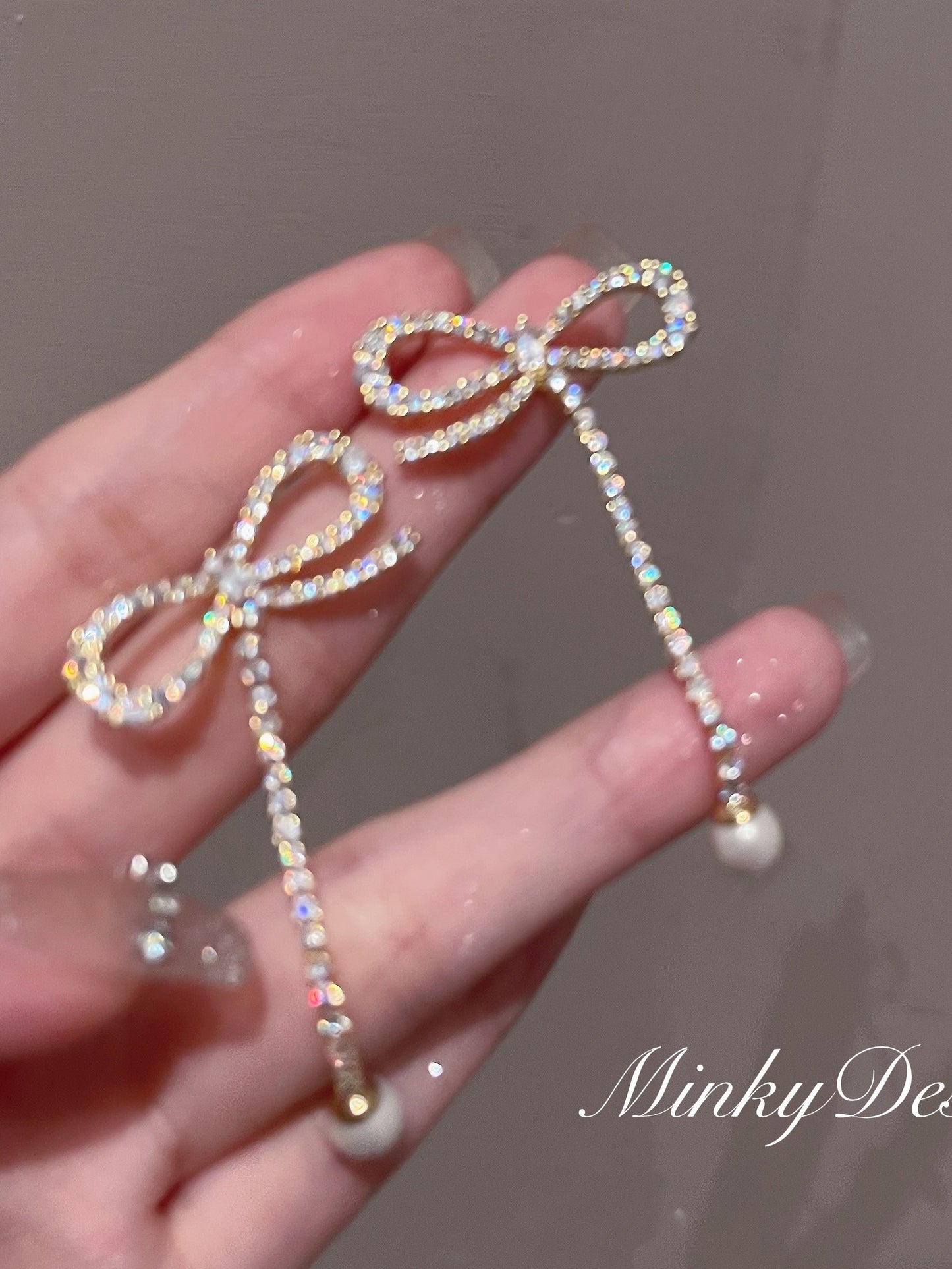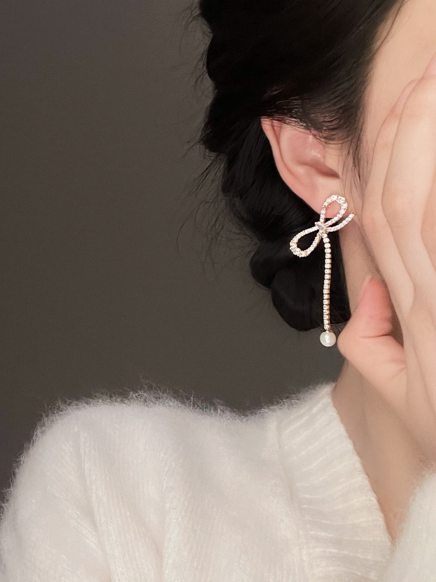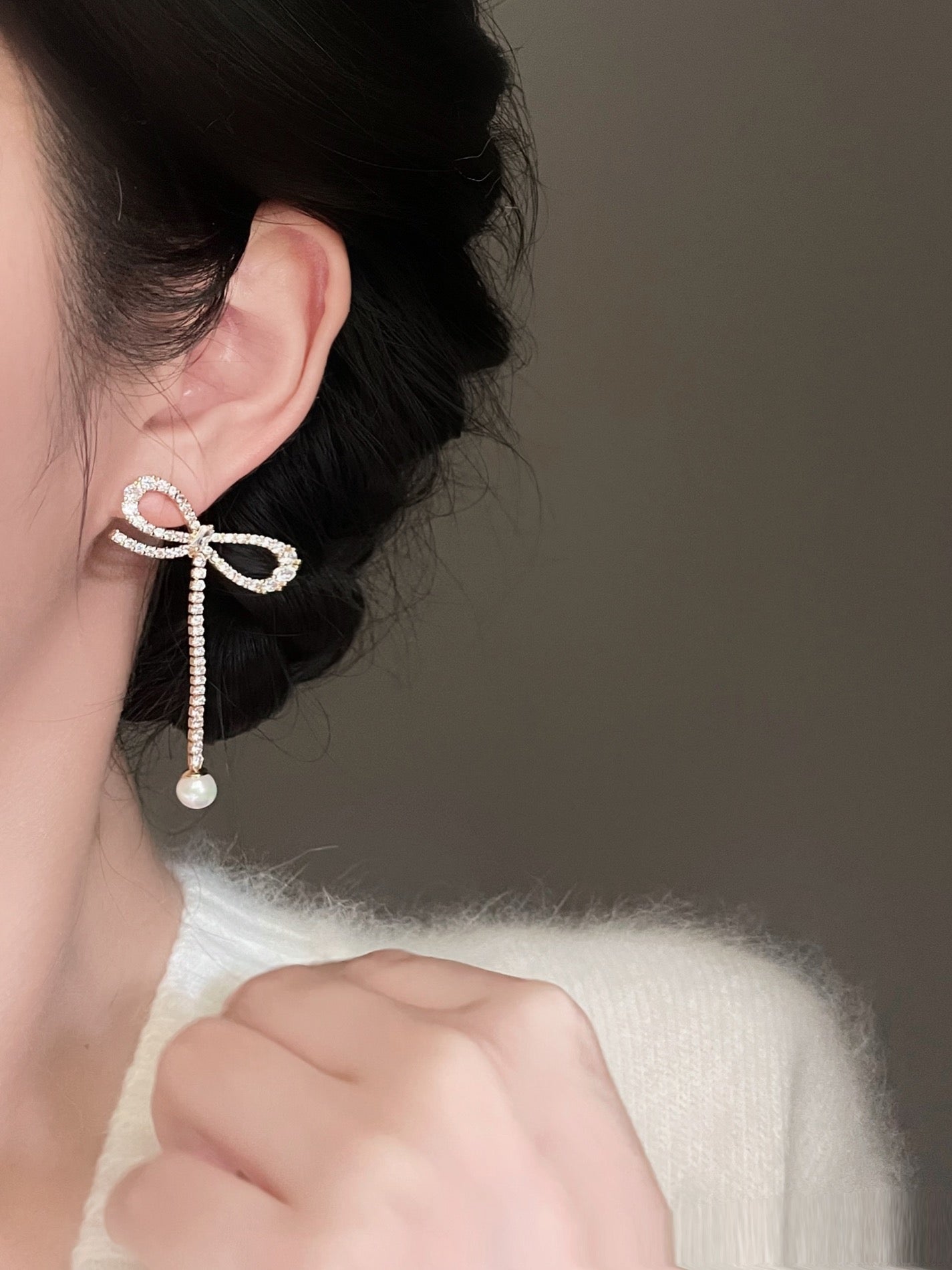 "Selling Gentleness" Exaggerated Bow Knot Mosquito Incense Plate Ear Clip Earrings Long Earrings Female Pearl Earrings Autumn and Winter