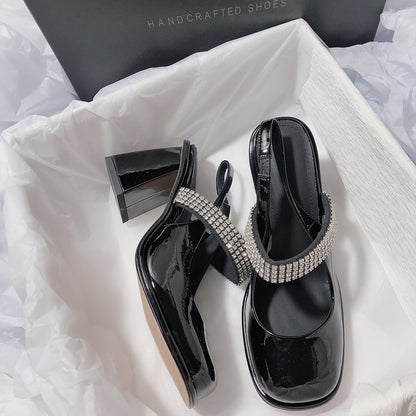 Senyu Sea Lane Chaebol Daughter Rhinestone Fairy French High Heel Literary Temperament Light Luxury Korean Baotou Sandals Summer