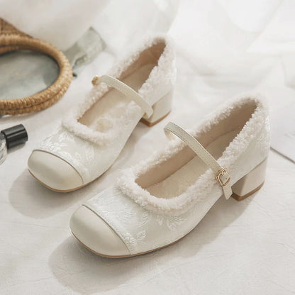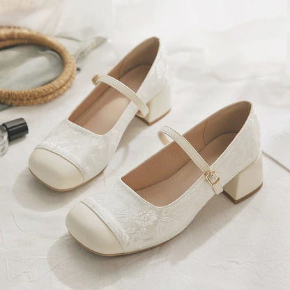 Sheepskin version ~ Chinese style cheongsam shoes Mary Jane shoes evening style gentle shoes with skirt French single shoes for women