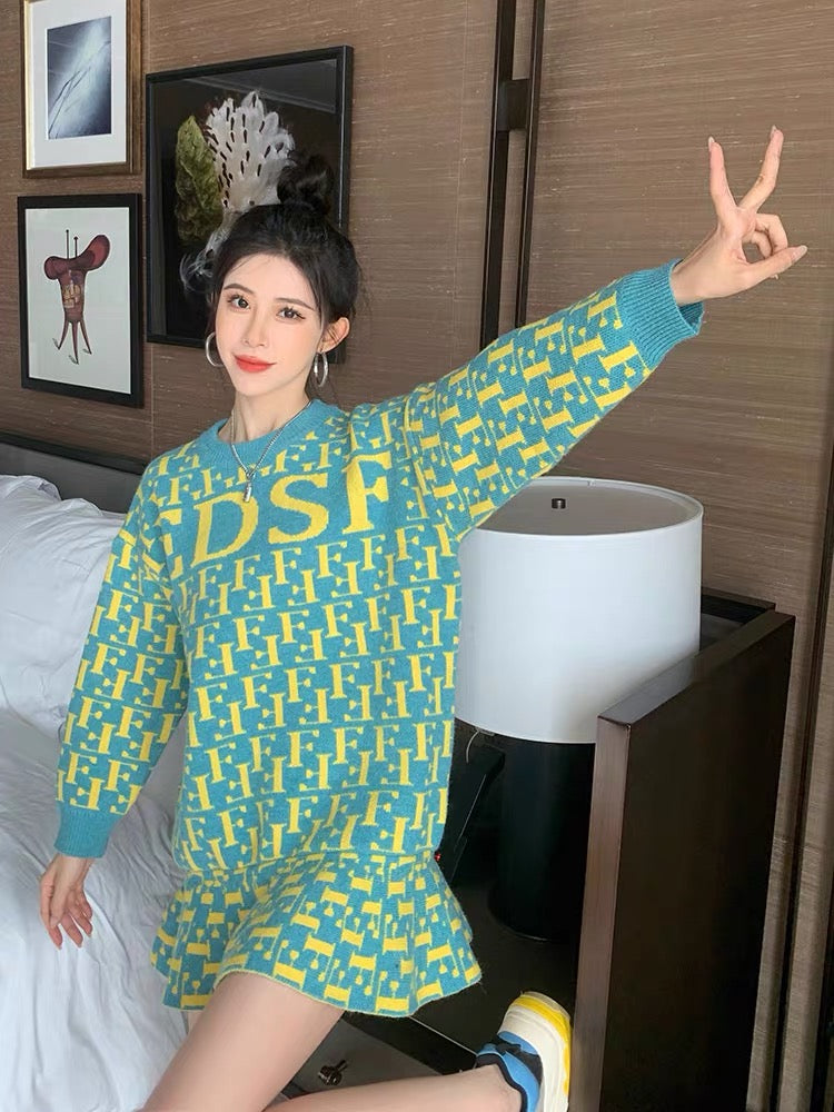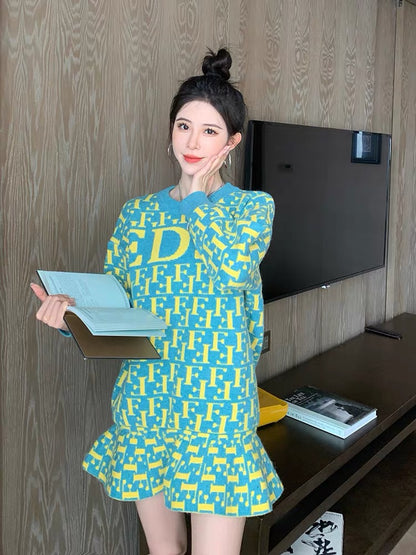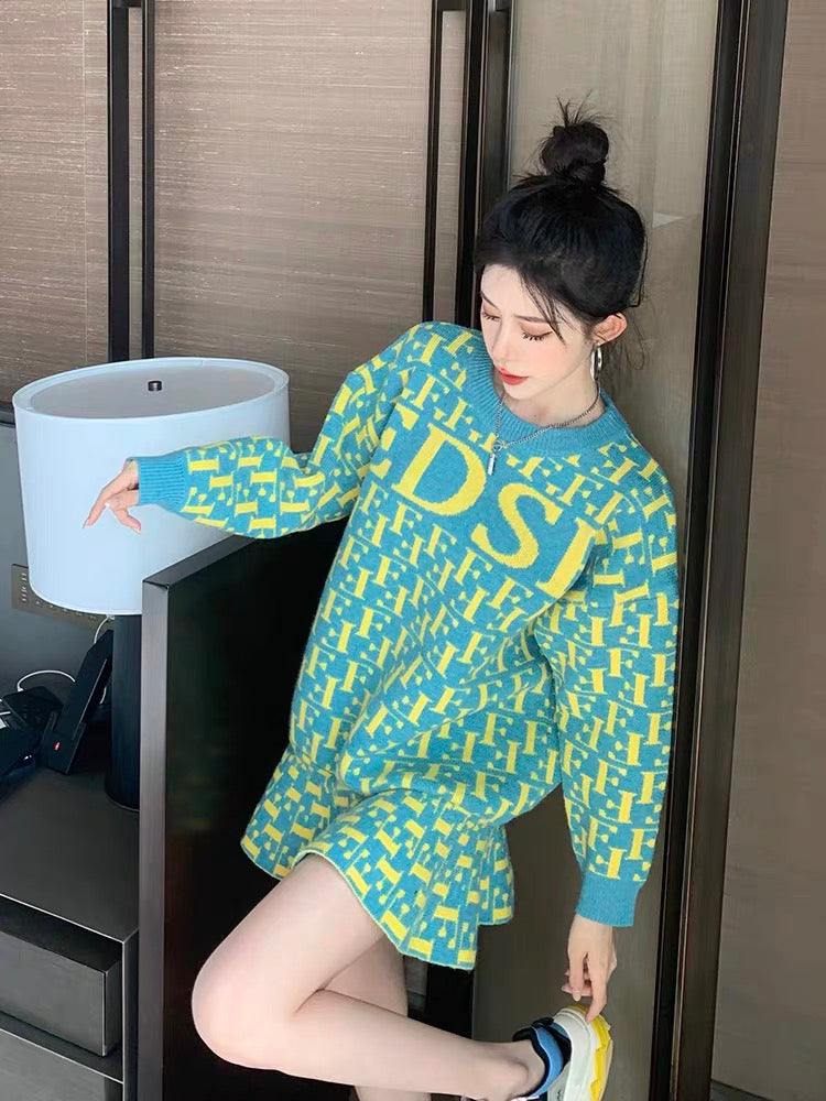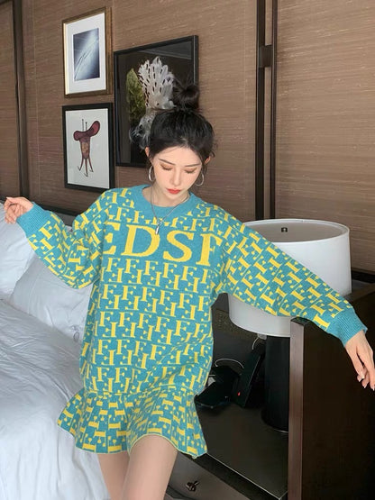 Soft Milk Blue Sweater Women's Coat Bottom Dress Autumn and Winter Korean Loose Pullover Mid-Length Knitted Fishtail Skirt