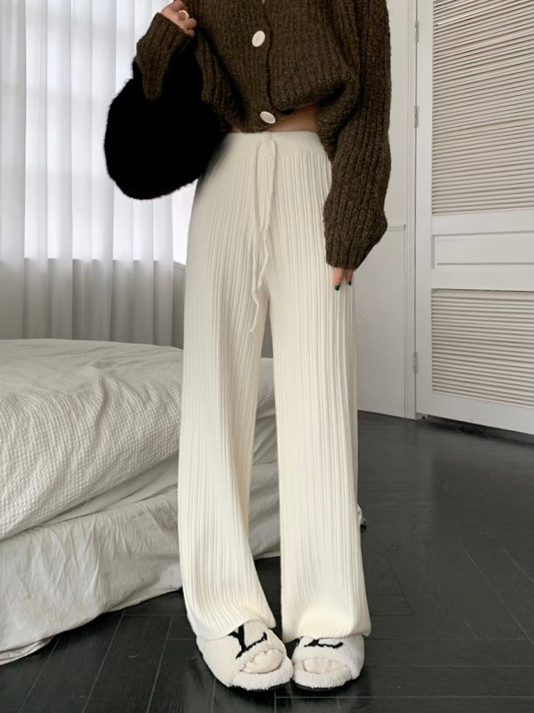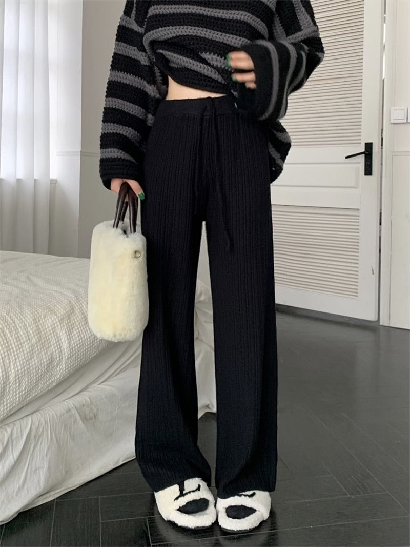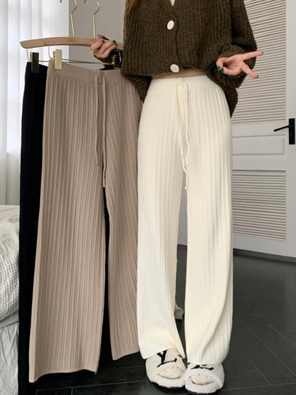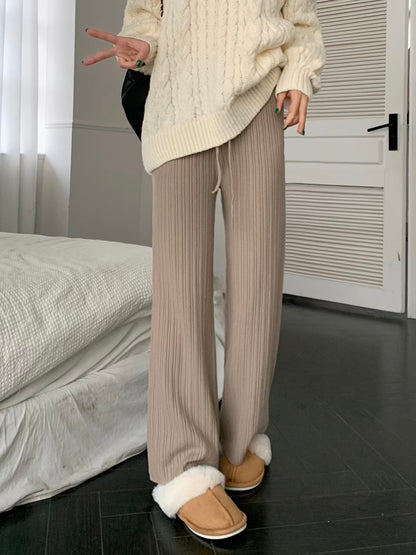 Soft waxy lazy style thick knitted casual pants women's autumn and winter high waist pitted trousers straight wide leg pants
