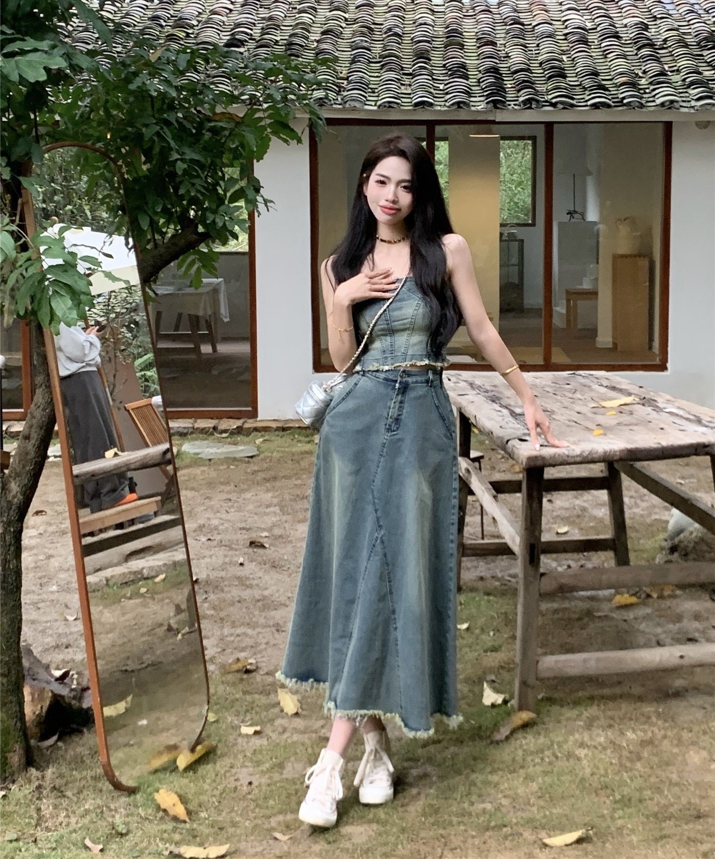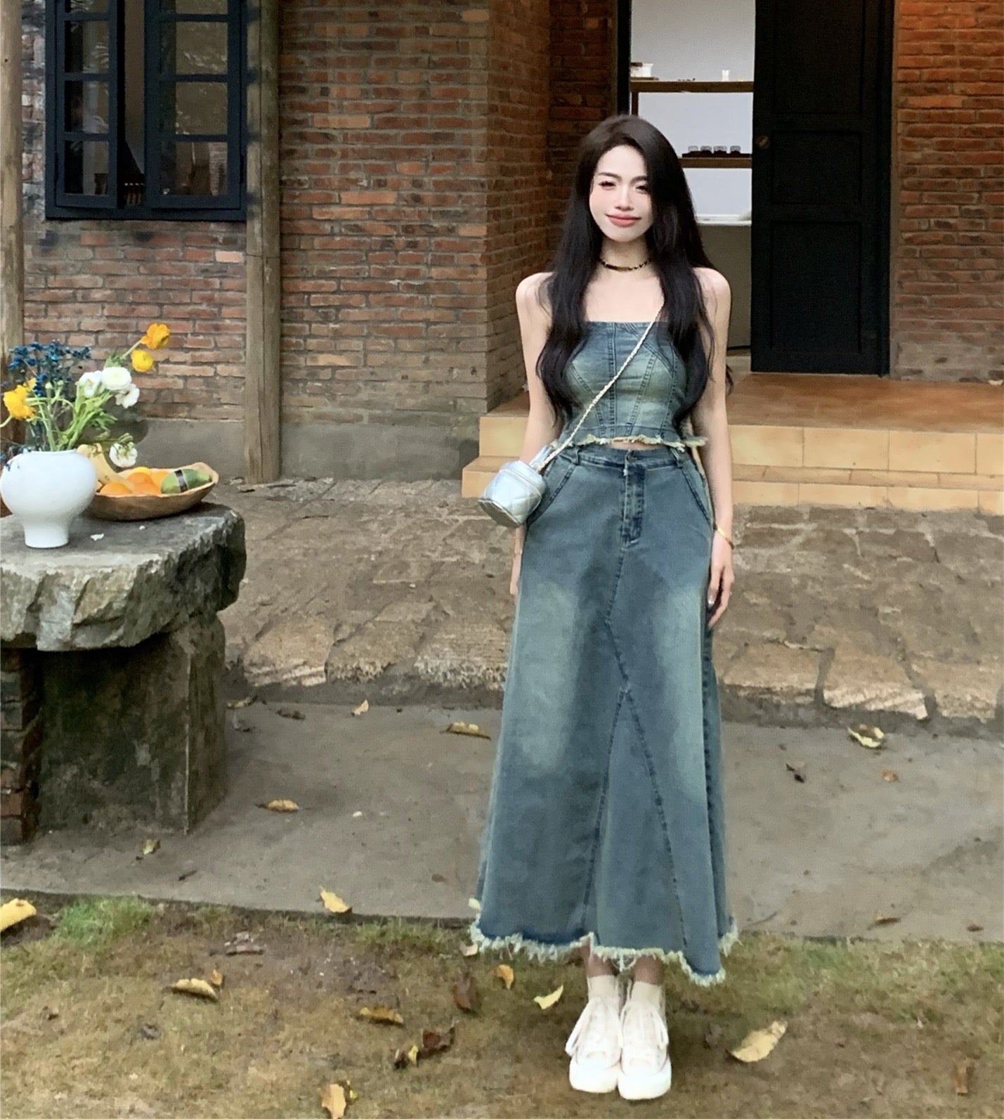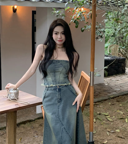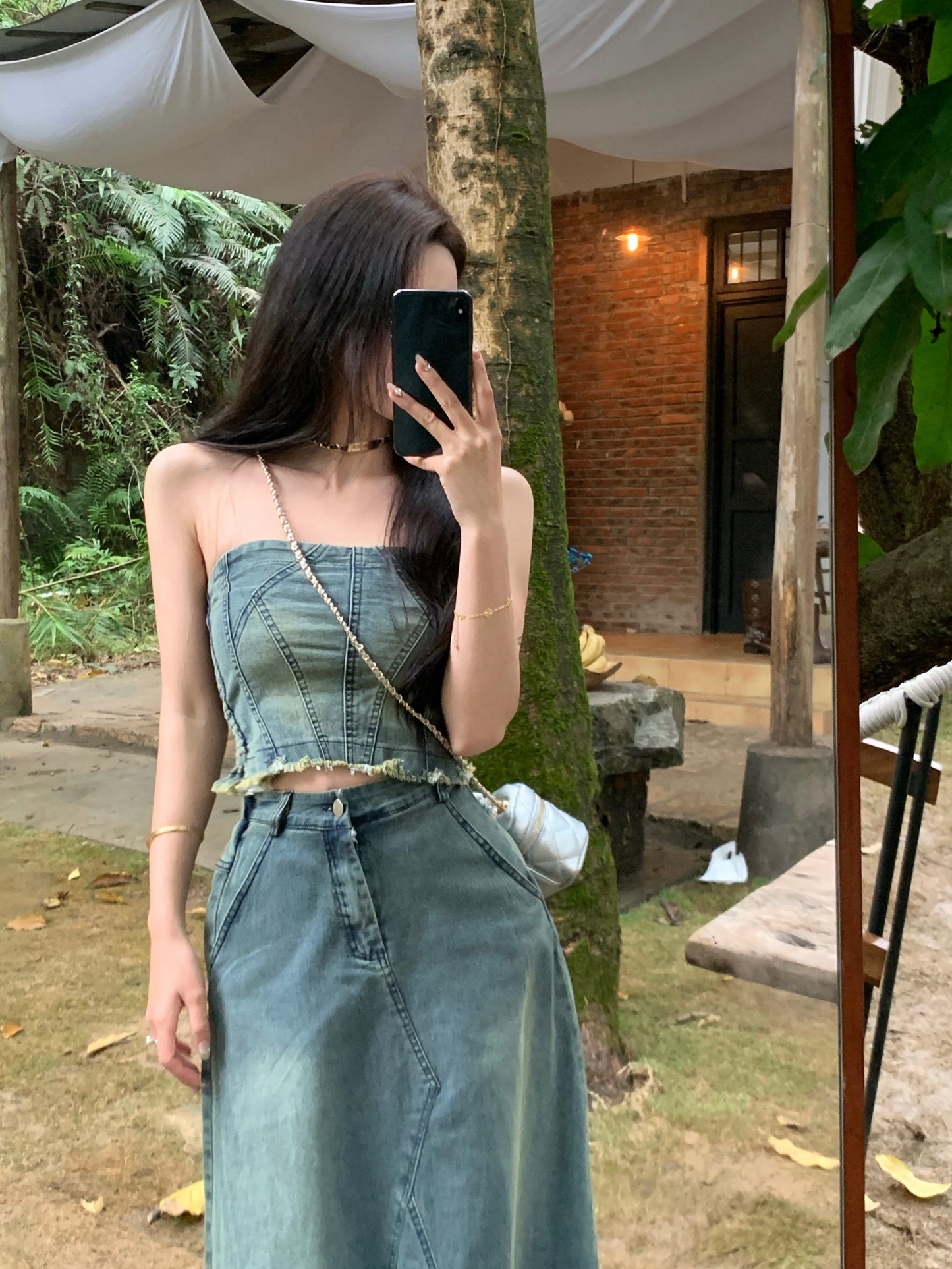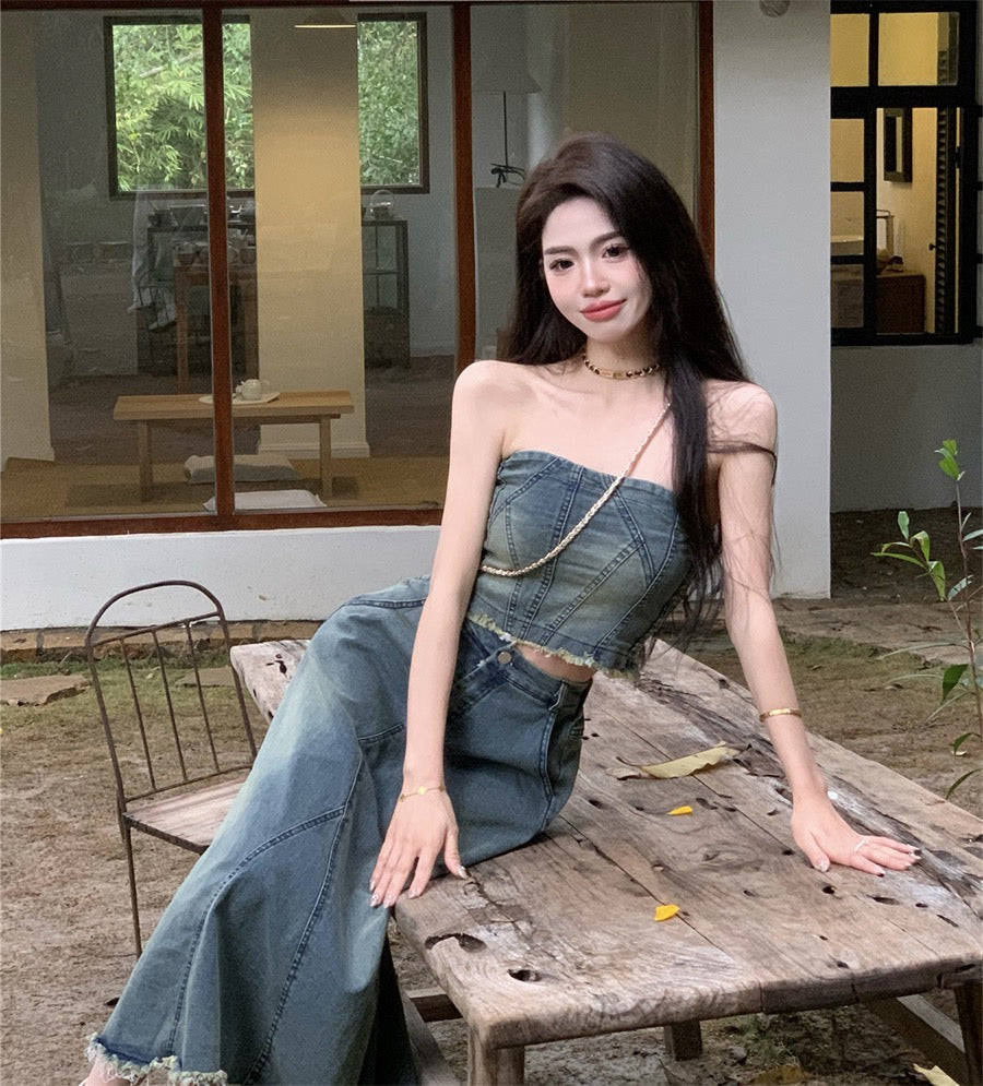 Spice Girls Retro Denim Tube Top Small Vest Women's Summer Sleeveless Sexy Slim Short Tops Wrapped Chest Outside
