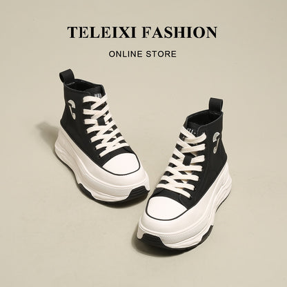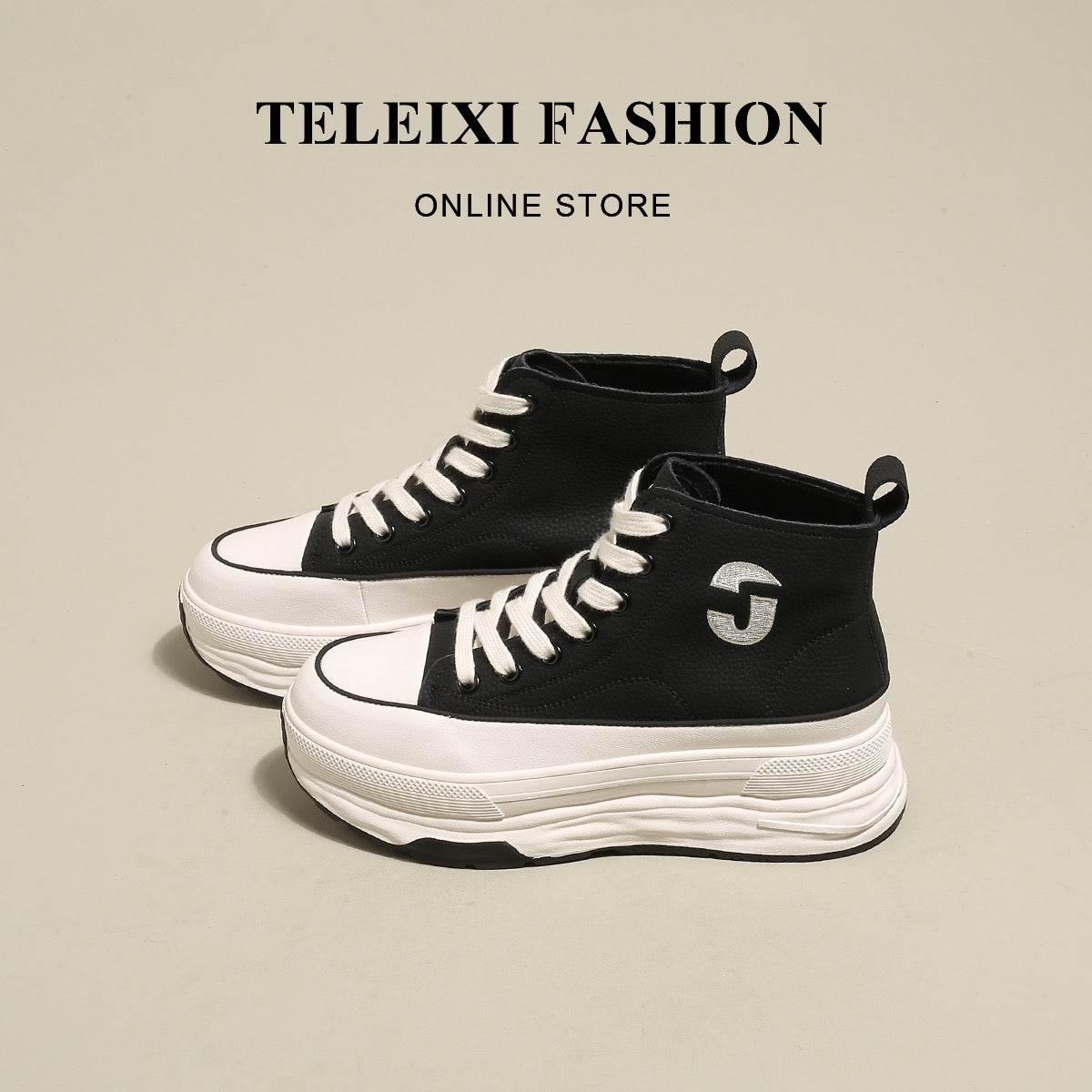 TELEIXI casual all-match ~ leather thick-soled high-top shoes women's 2022 new autumn sports fashion white shoes
