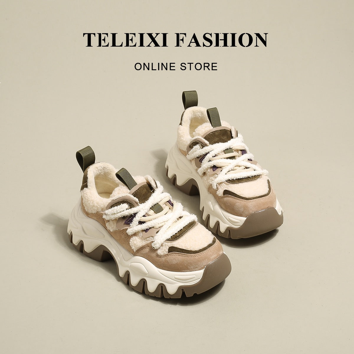 TELEIXI Mousse Cheese~Lamb wool thick-soled plus velvet daddy shoes women's autumn and winter new leather warm cotton shoes