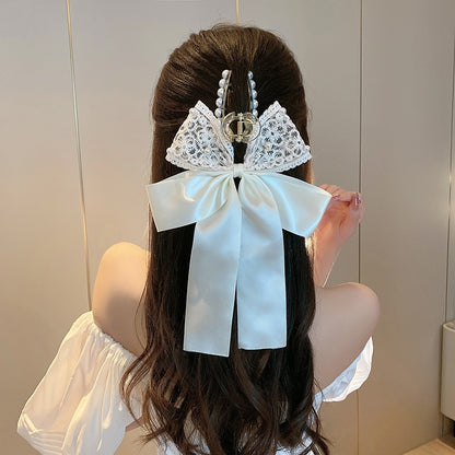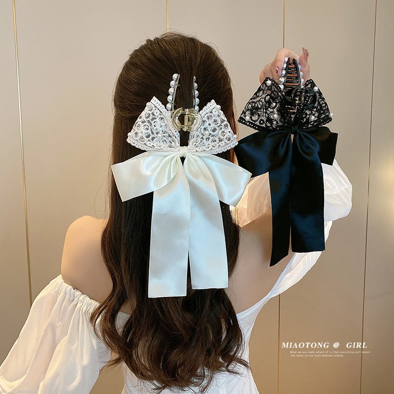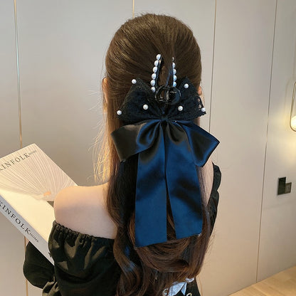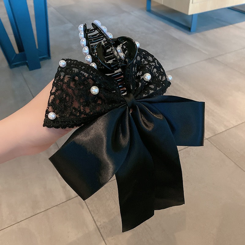 Temperament black bow headdress hair clip female head elegant clip large high-end summer shark clip