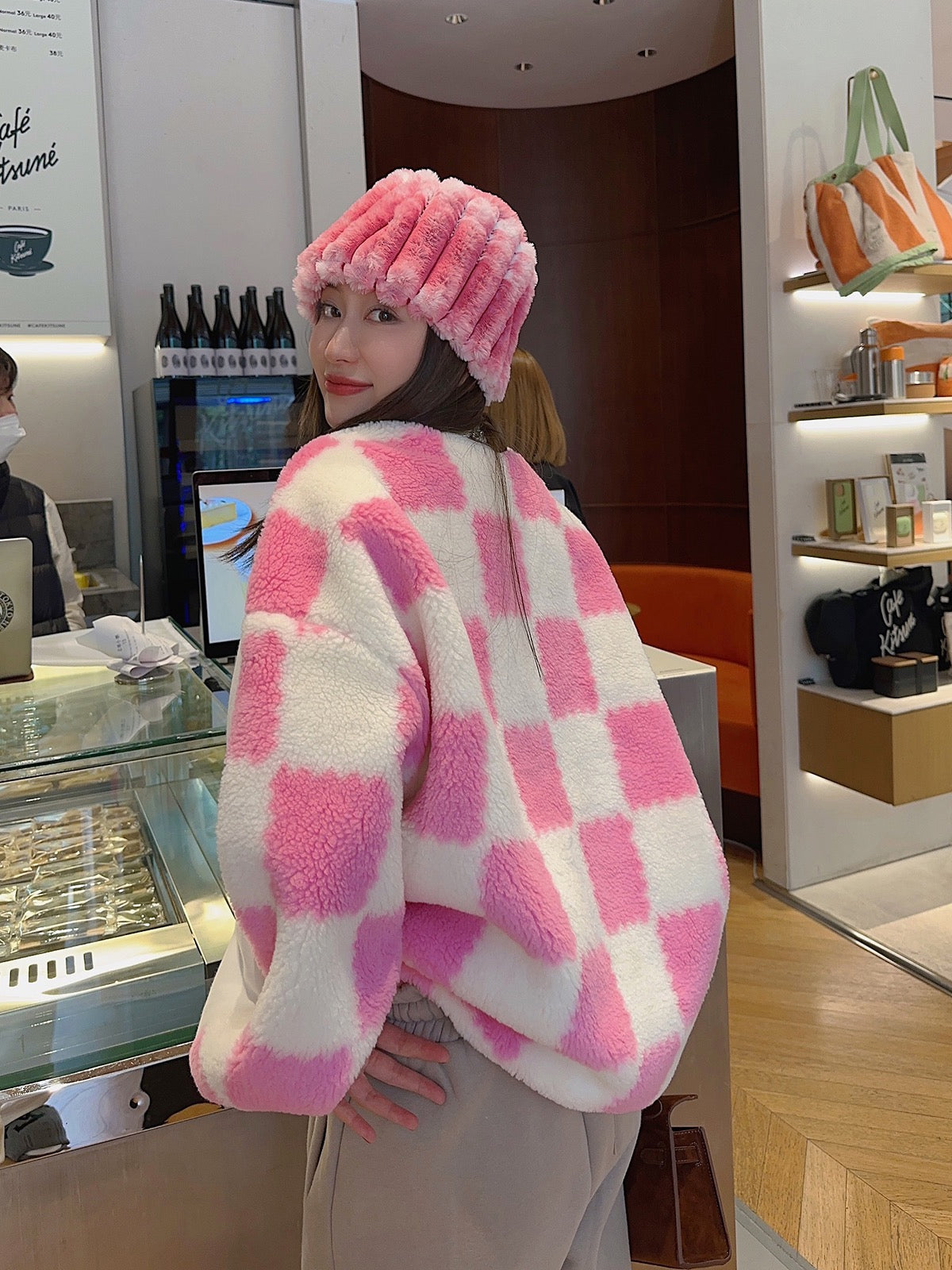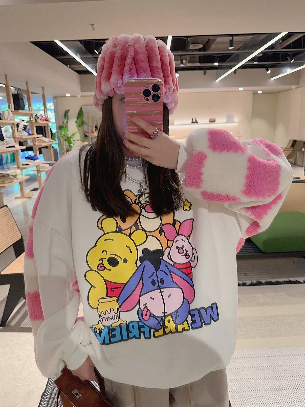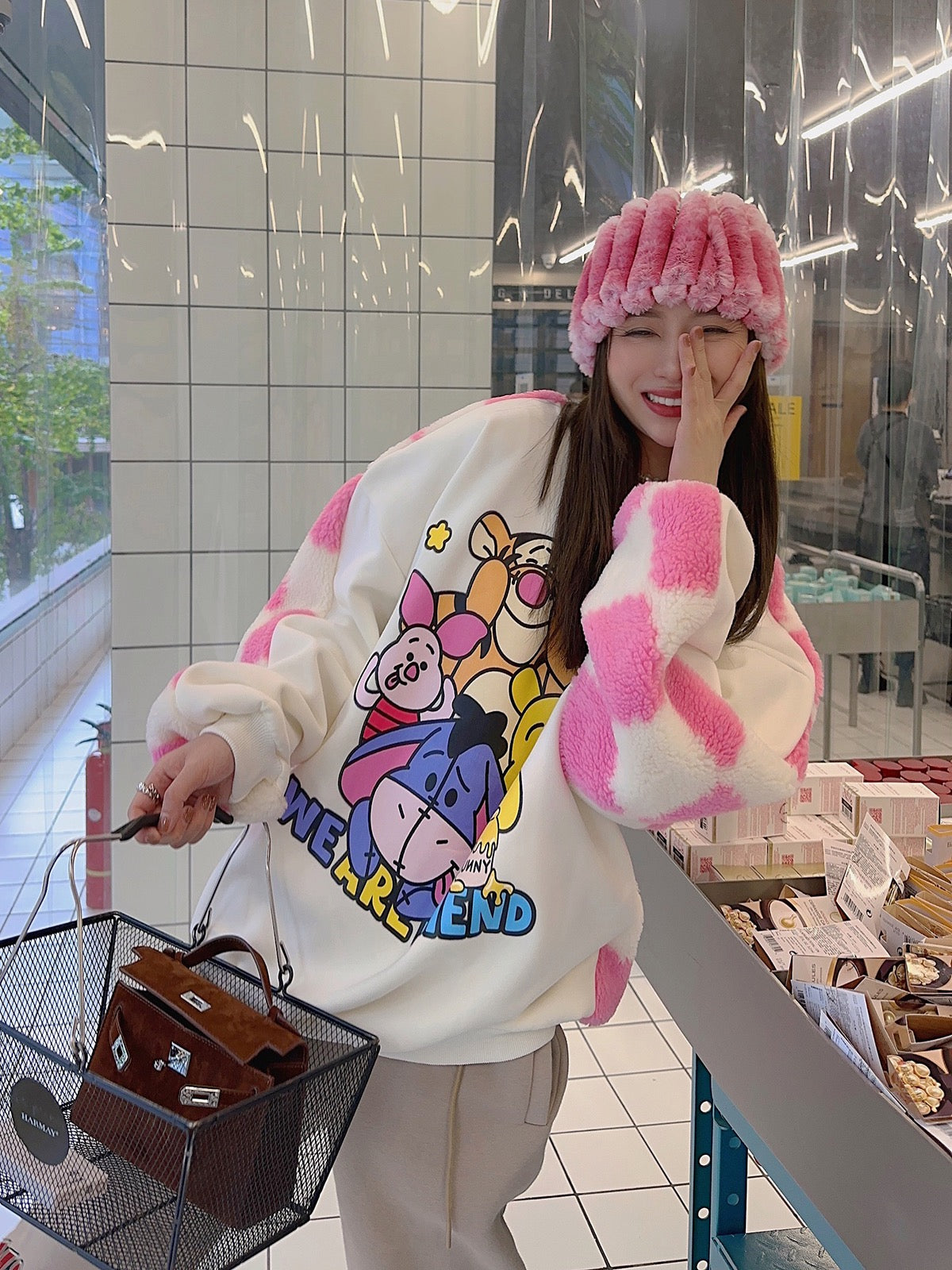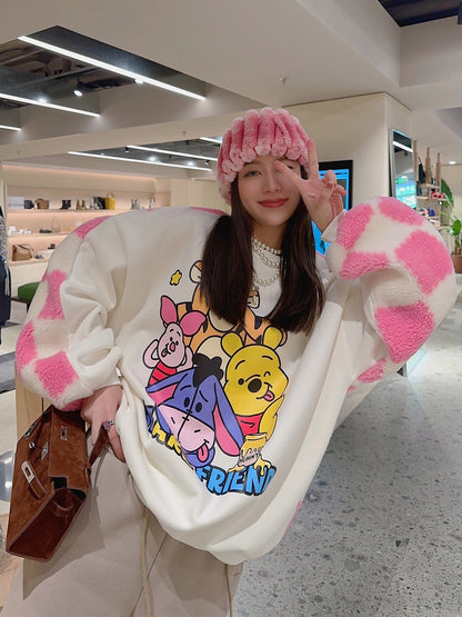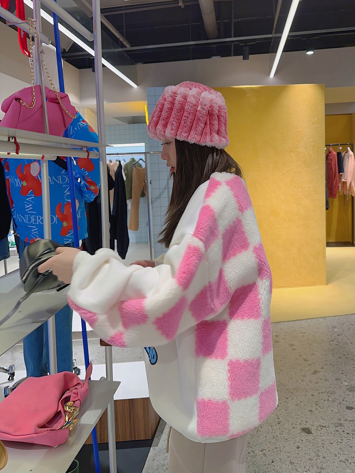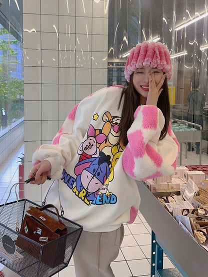 Thebestxue Korean version of plaid animal polar fleece stitching sweater women's autumn and winter 2022 new fleece top trend