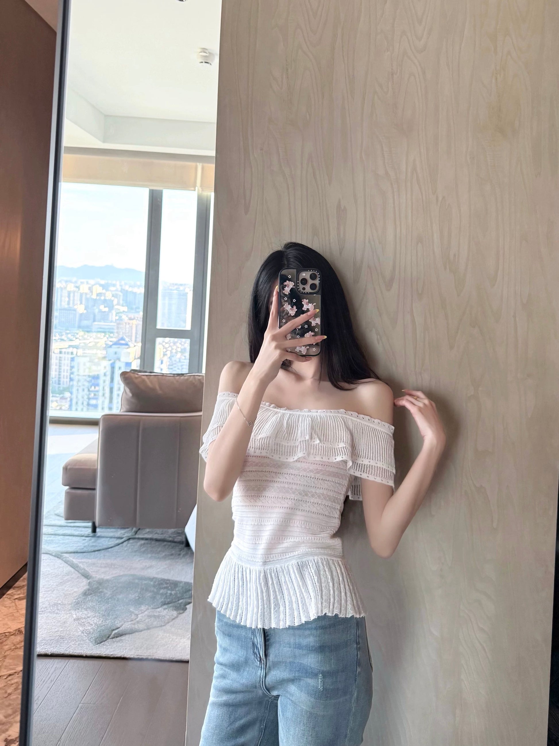@uniken【Ethereal and Ethereal】Summer Pure and Alluring Off-Shoulder Slim Fit Top for Women
