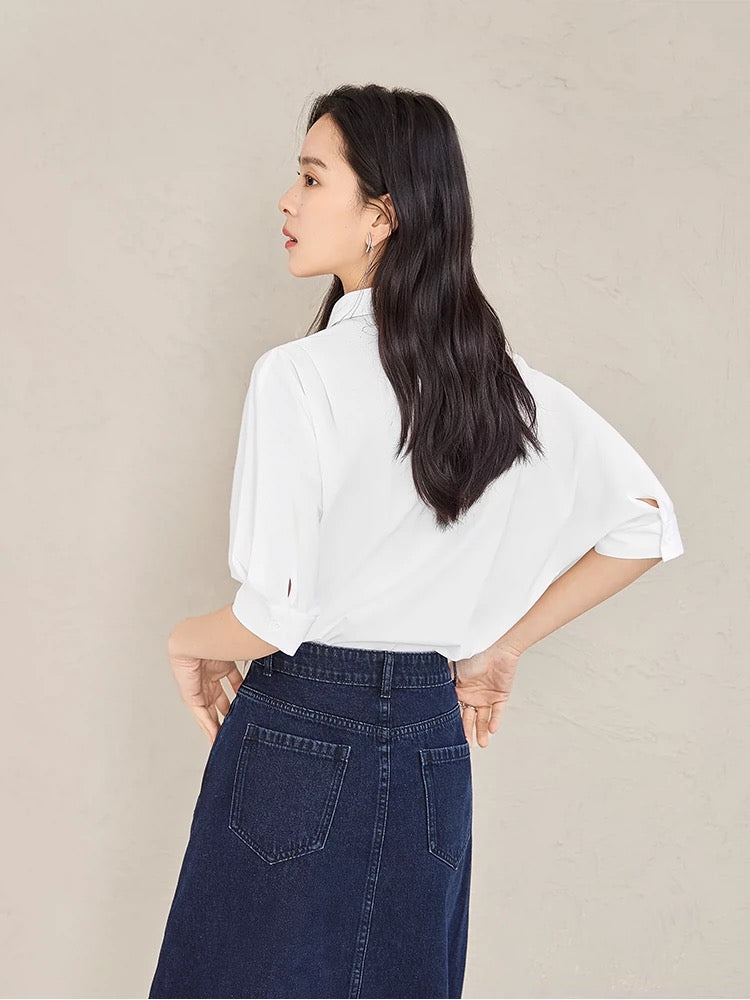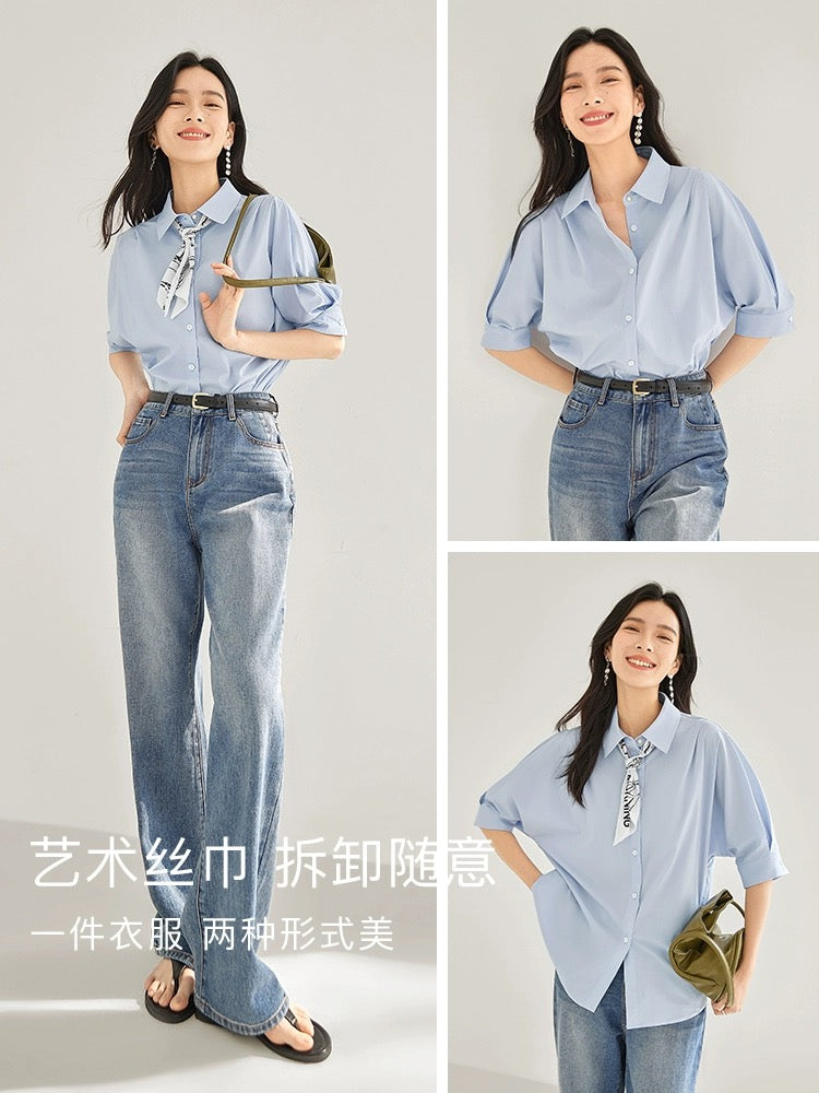 Vincent Van Gogh joint dialogue French mid-sleeve shirt women's summer 2024 new silk scarf pleated white top