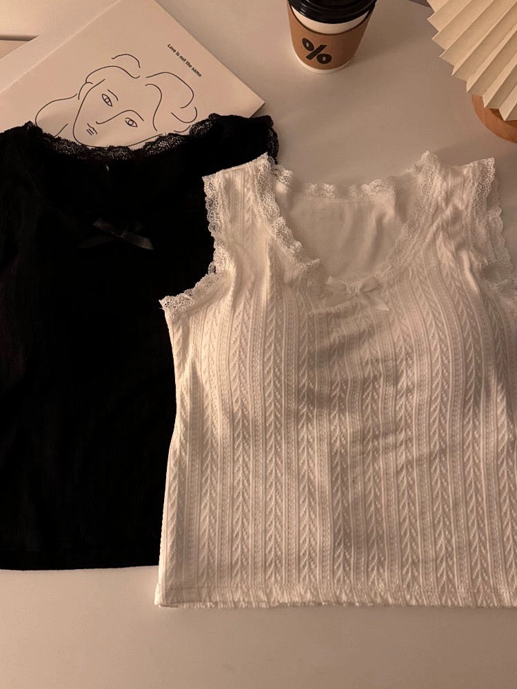 White lace bm camisole women's spring sleeveless sweet and spicy inner layering short top with breast pads for outer wear