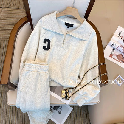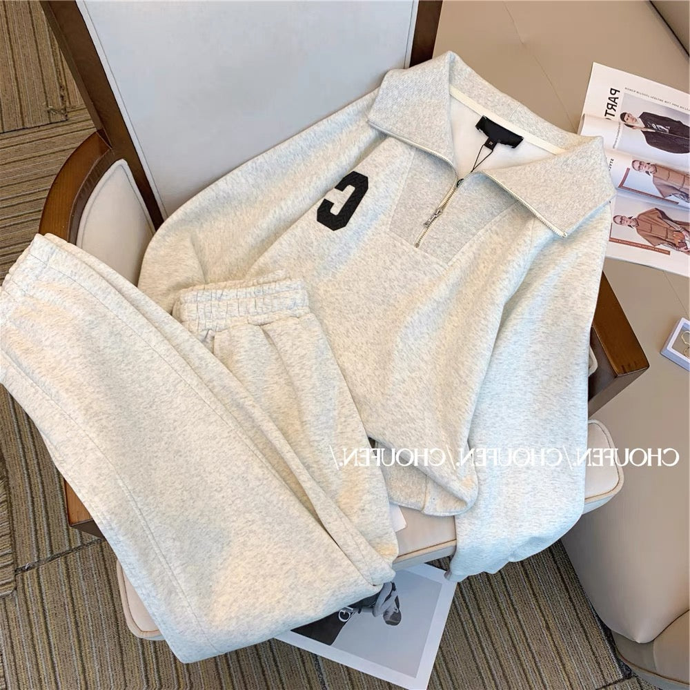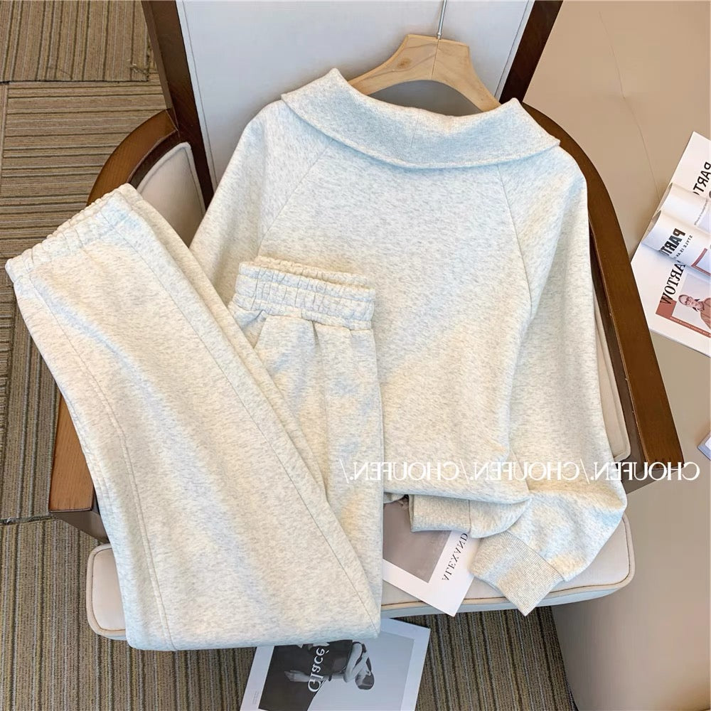 Xiaoxiangfeng fashionable fleece sweater suit female 2022 new autumn and winter loose thickened wide leg pants casual two-piece suit