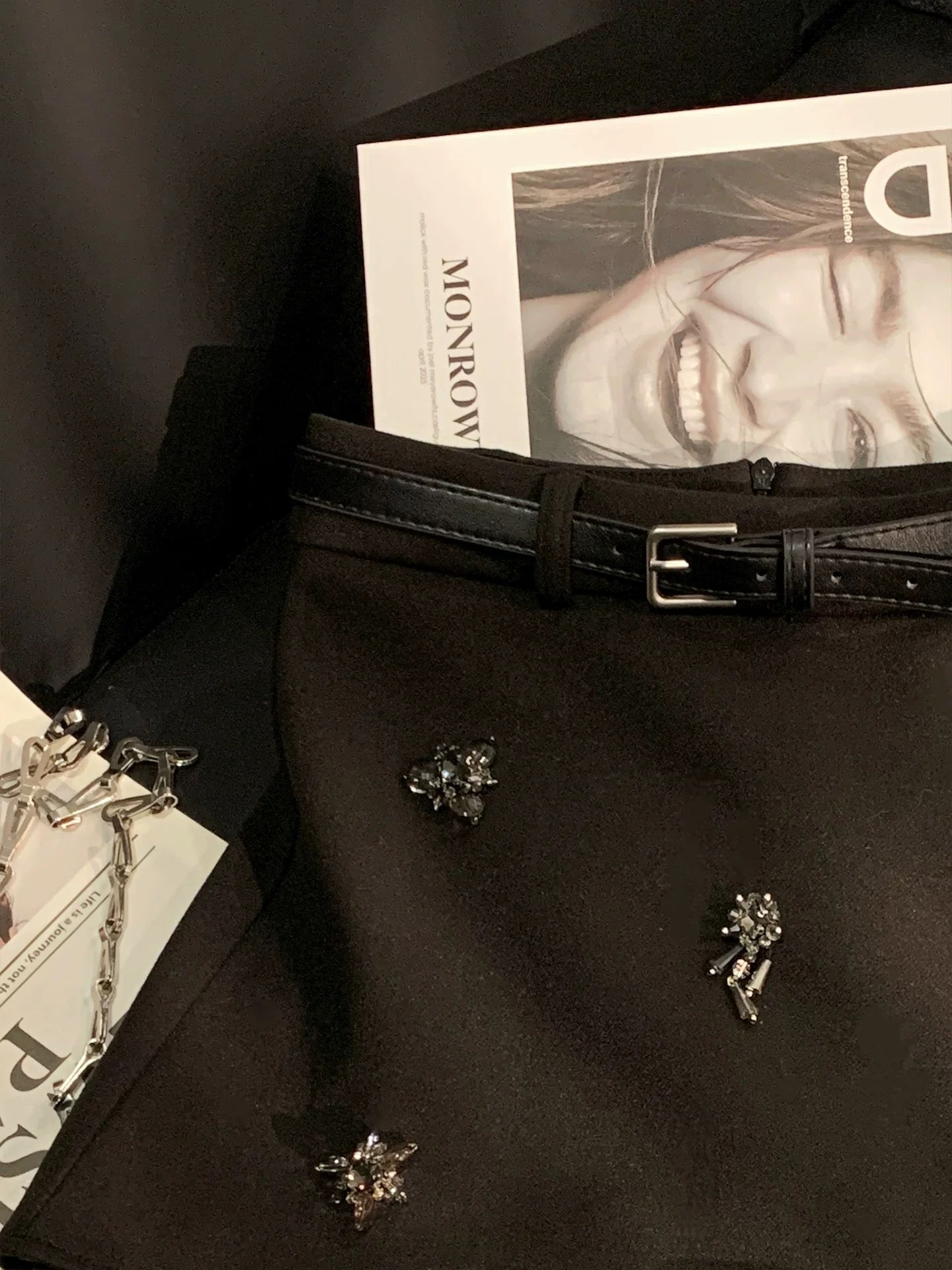 ZHOUYI/Zhou Yi's elegant black pleated pencil skirt, a versatile and slimming high-waisted A-line skirt.