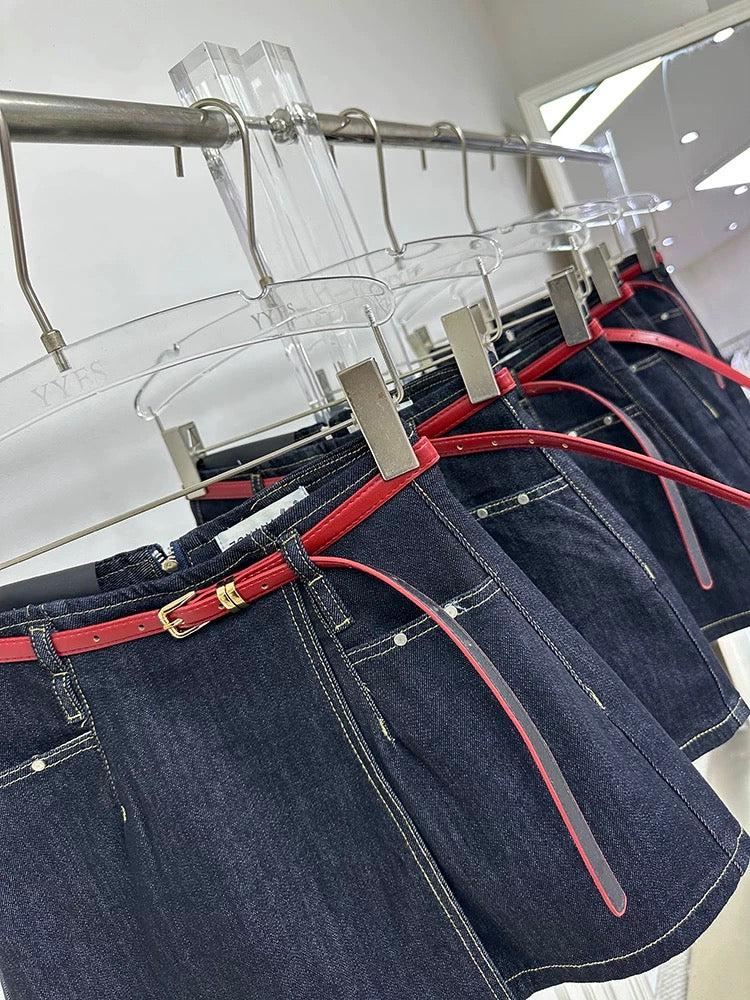 Zuo Nana summer high waist black and gold fake two-piece half-length jeans skirt women's irregular A-line all-match shorts women